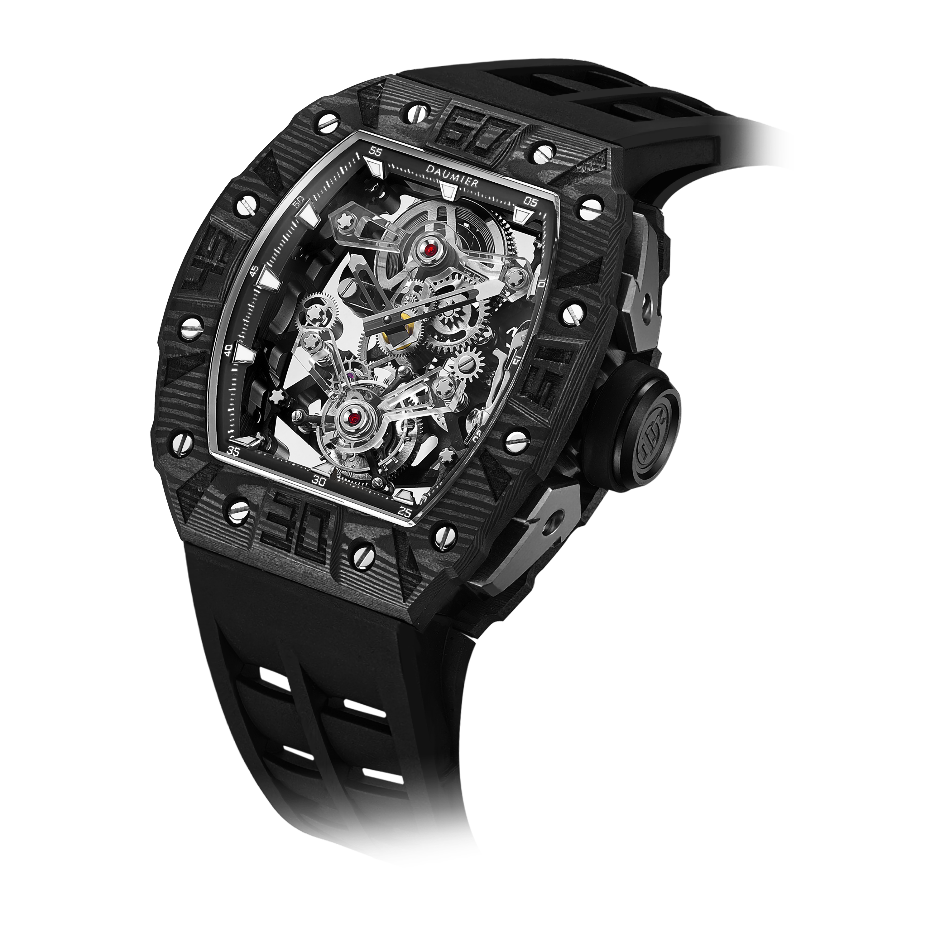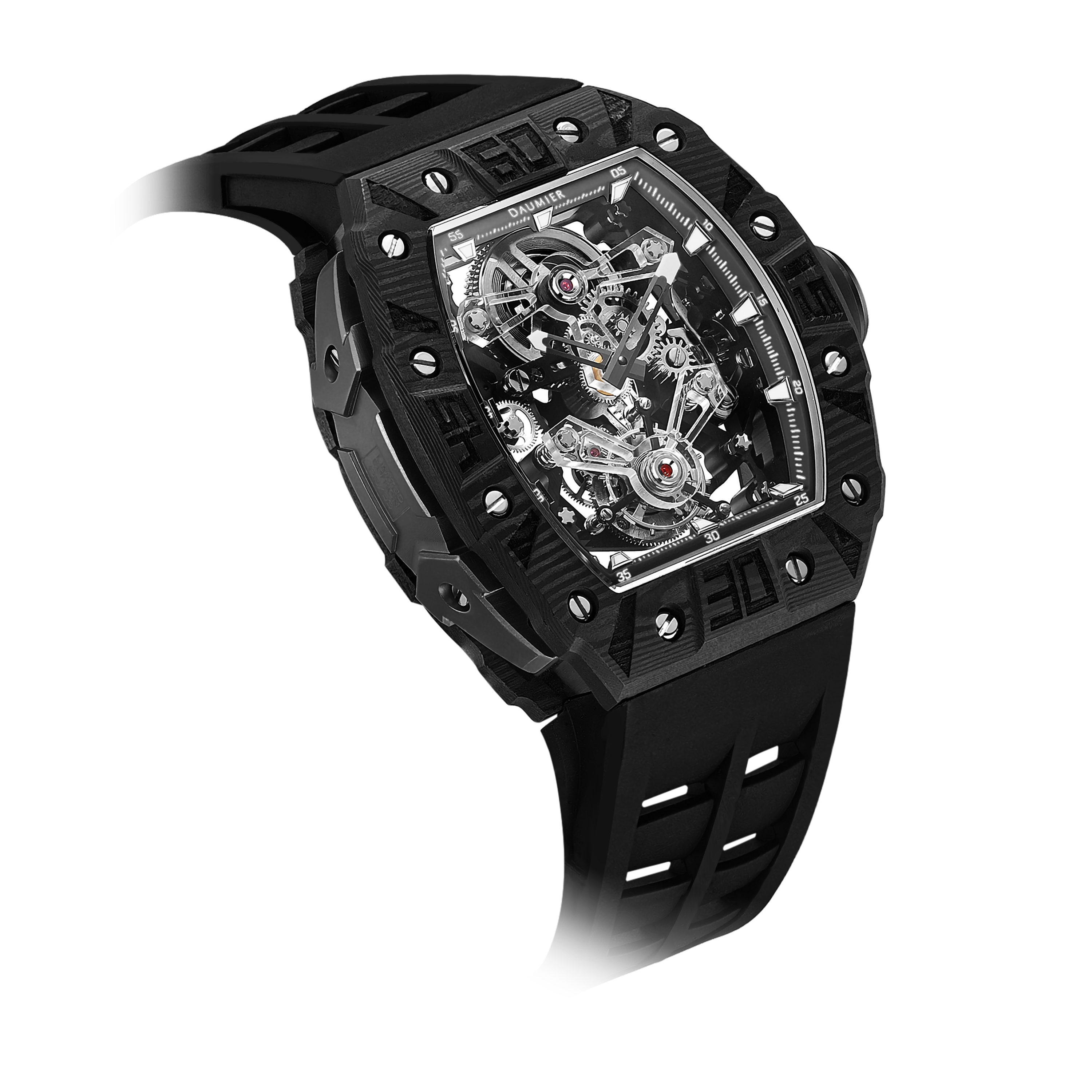 Daumier獨家設計的碳纖維表圈和底蓋碳纖維表圈均採用日本進口TORAYCA碳纖維原材。碳纖維表圈超級夜光功能,用於指定型號。