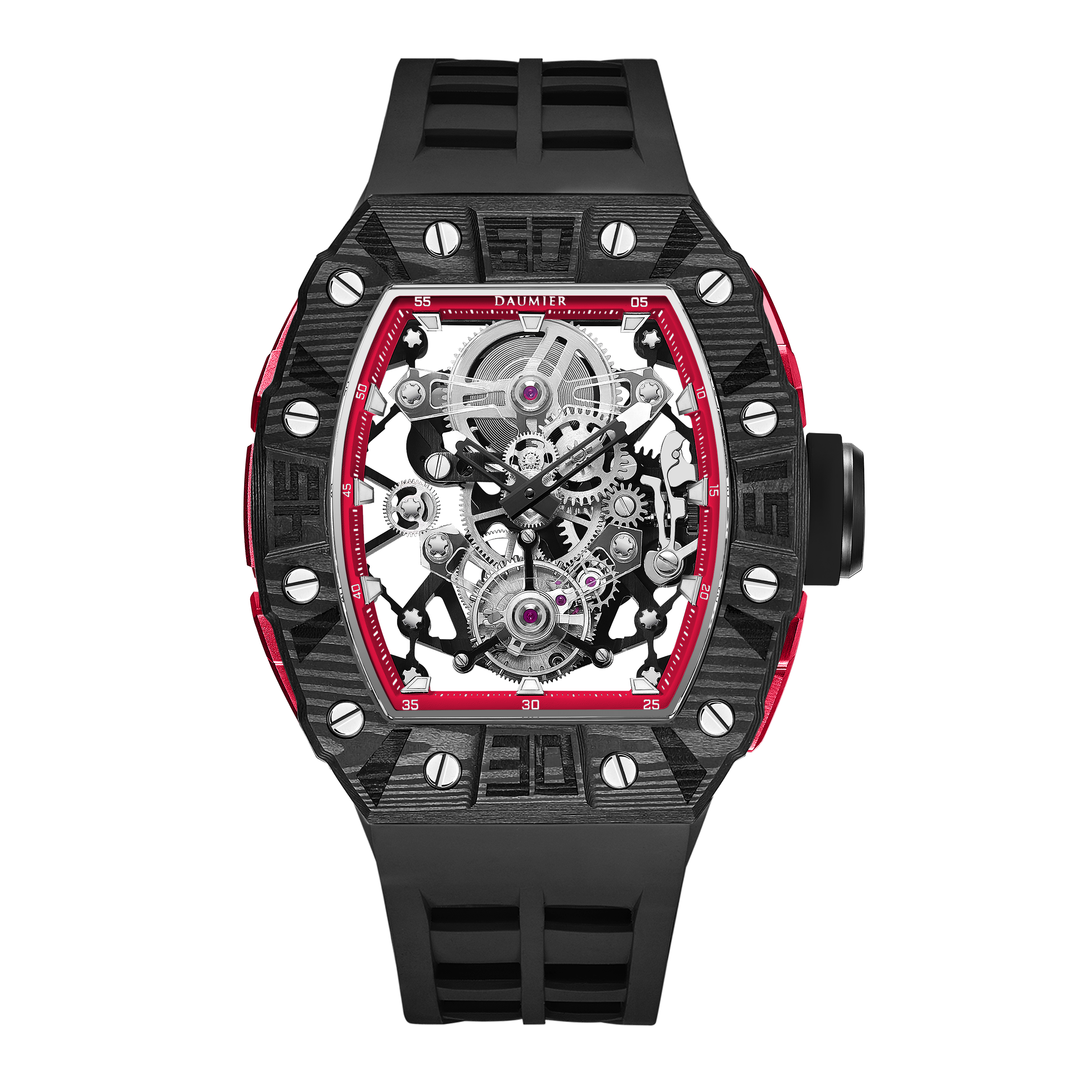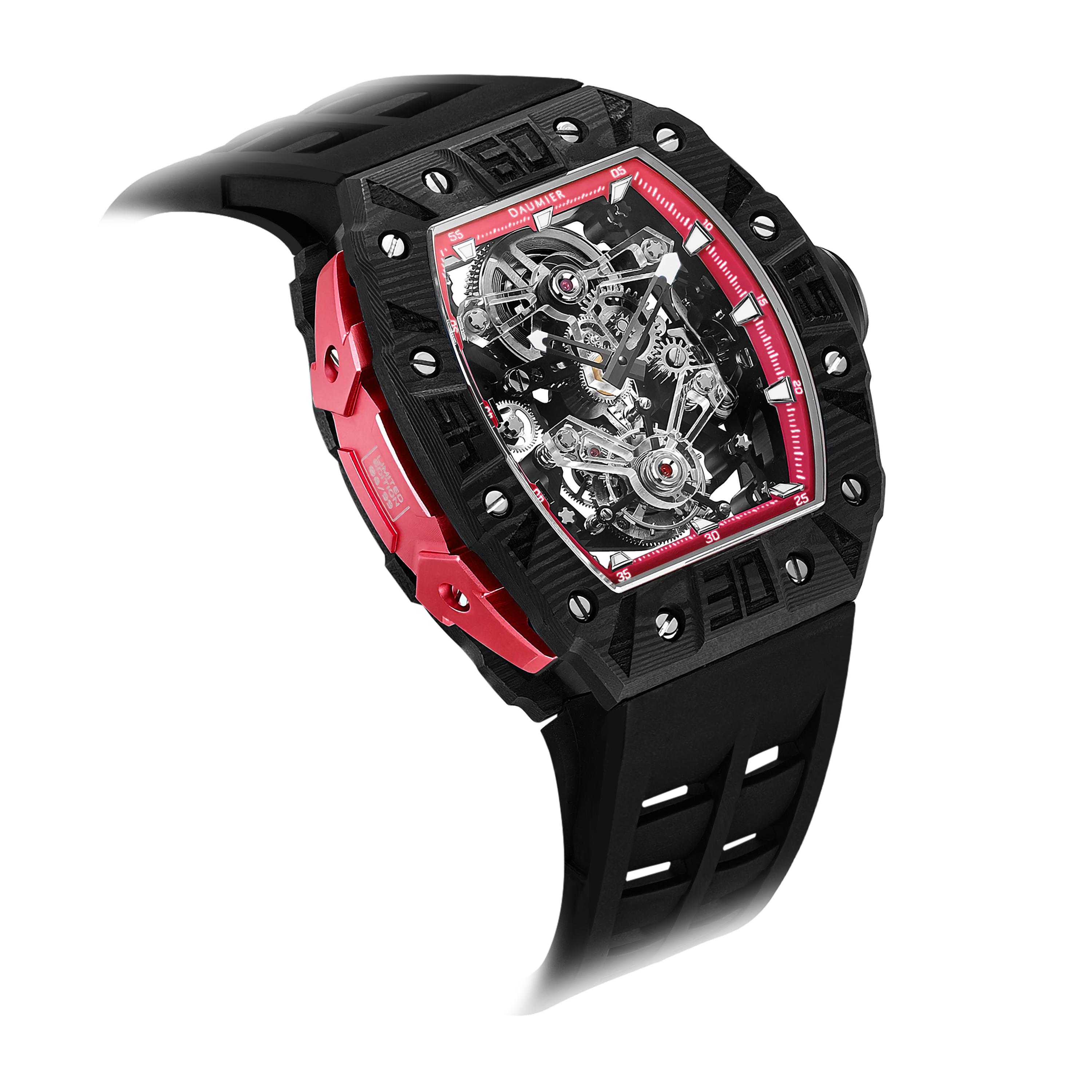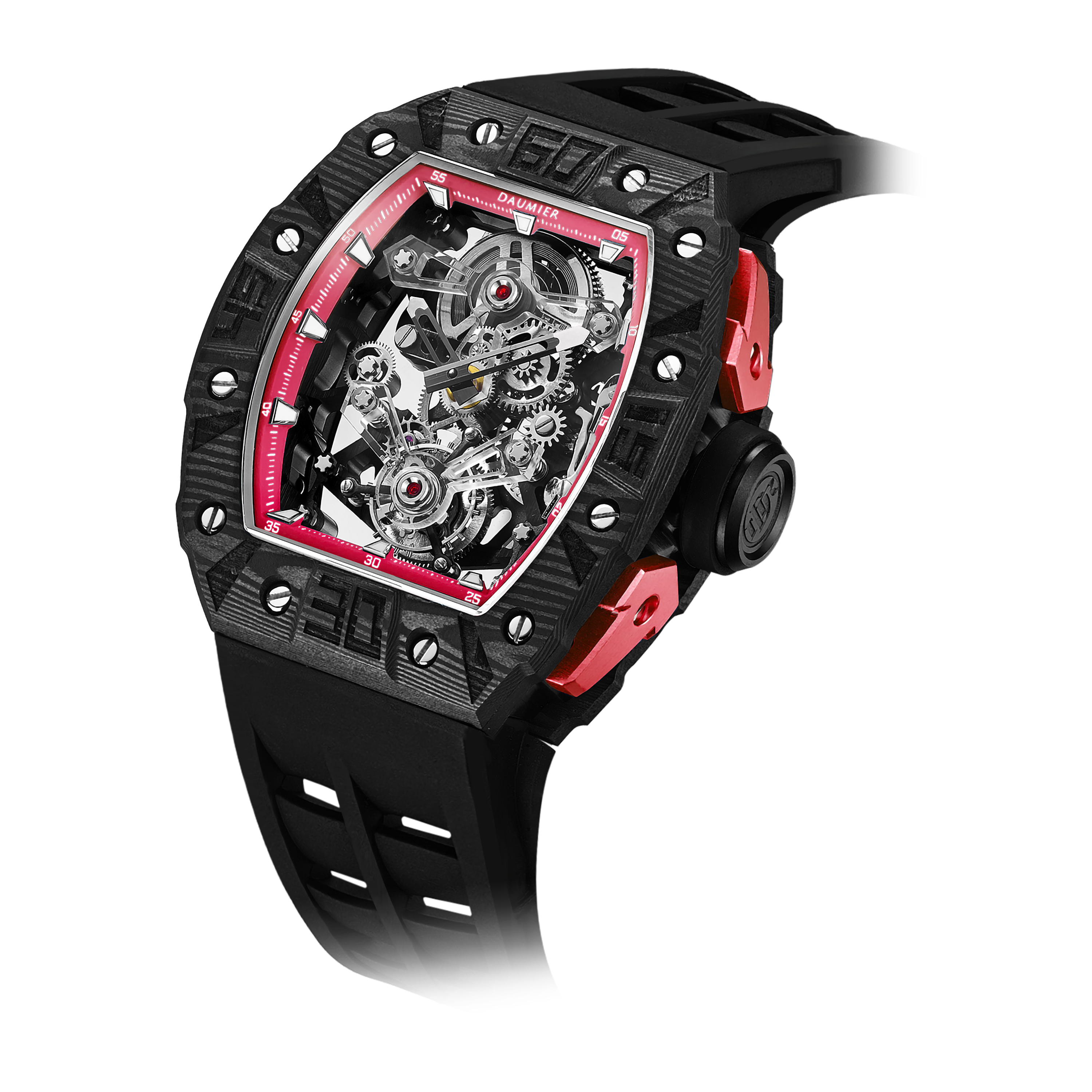 Daumier獨家設計的碳纖維表圈和底蓋碳纖維表圈均採用日本進口TORAYCA碳纖維原材。碳纖維表圈超級夜光功能,用於指定型號。