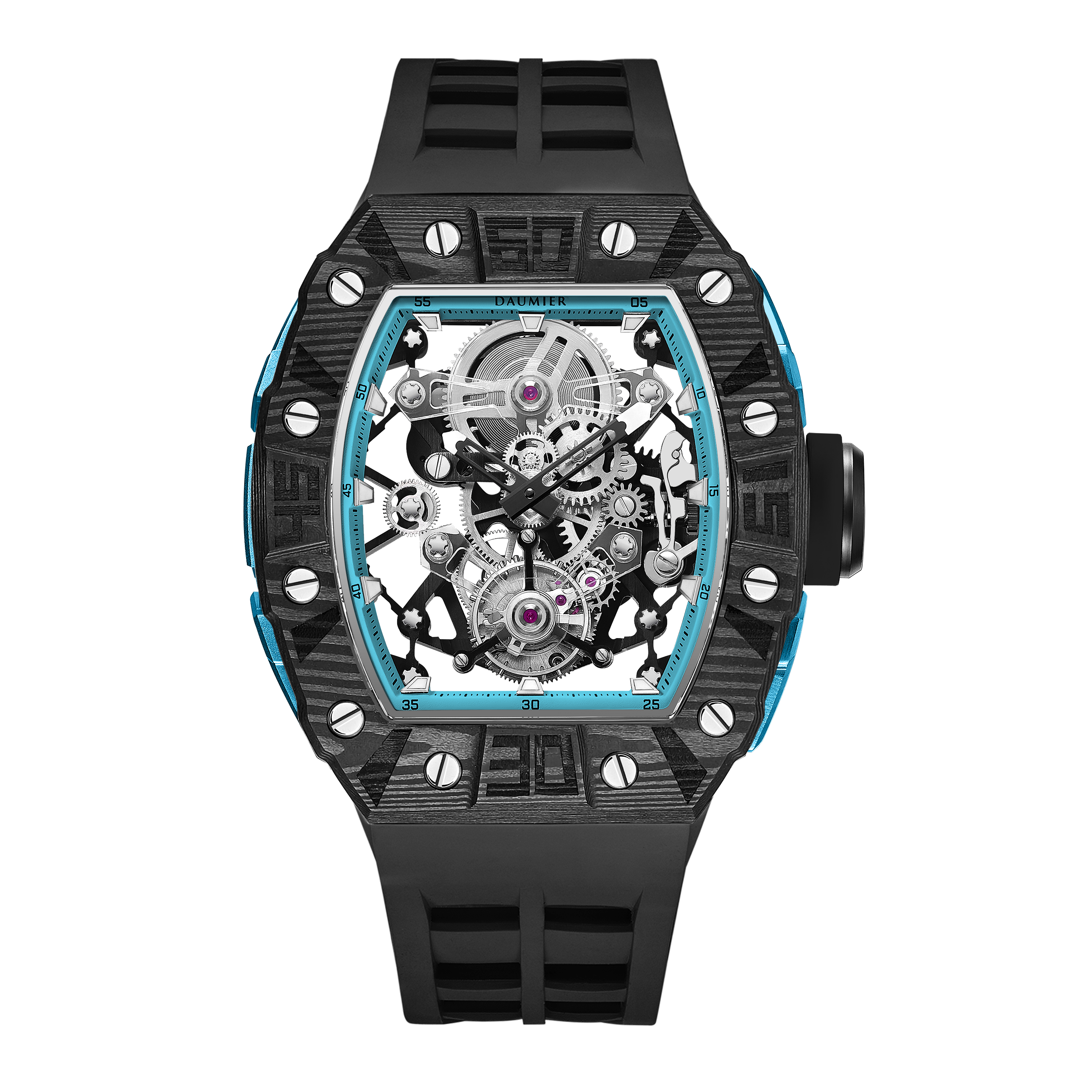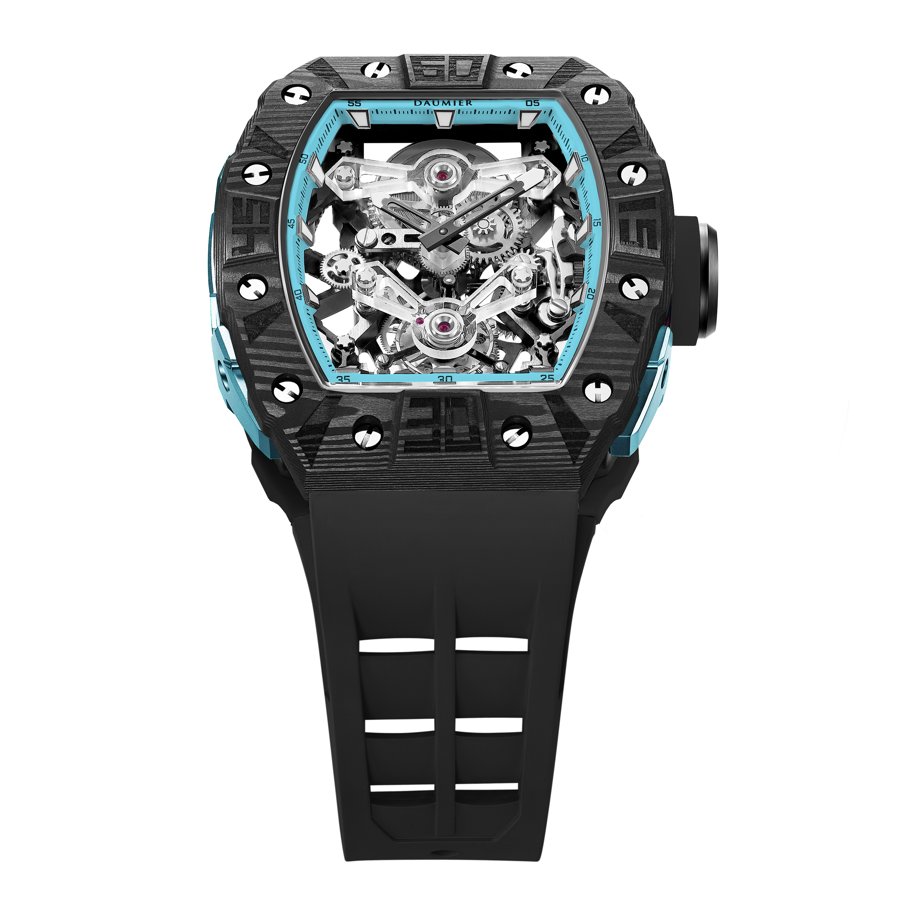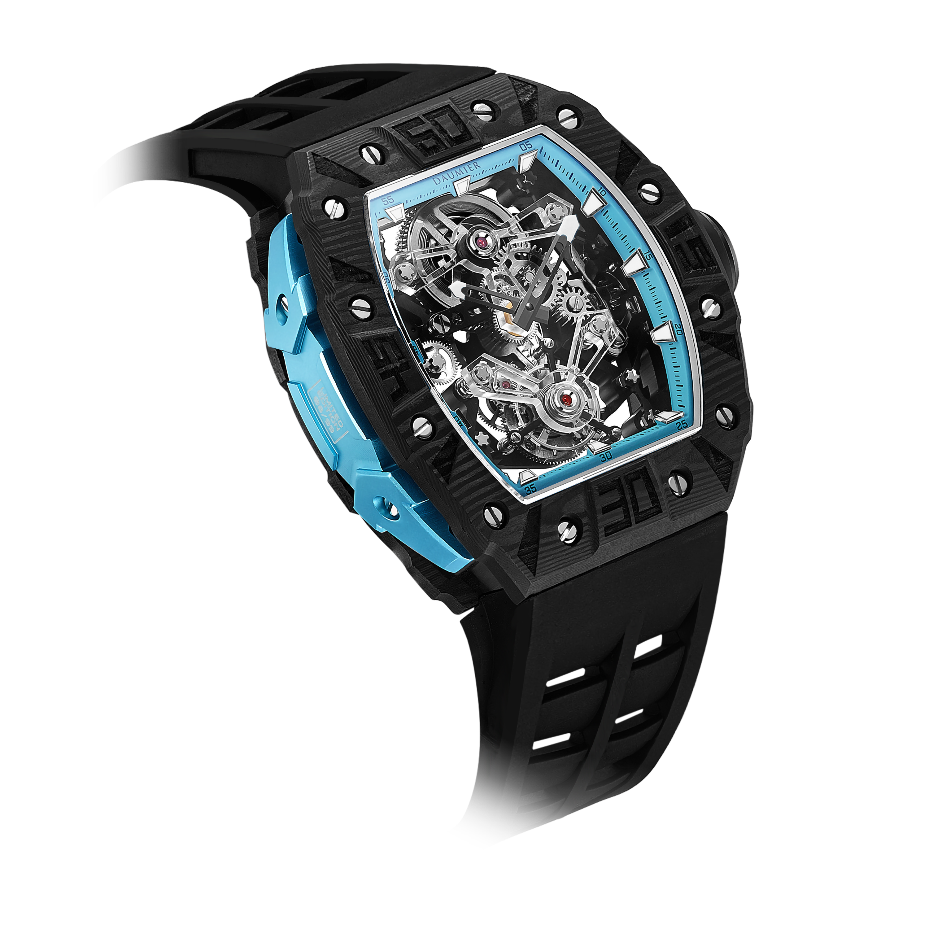 Daumier獨家設計的碳纖維表圈和底蓋碳纖維表圈均採用日本進口TORAYCA碳纖維原材。碳纖維表圈超級夜光功能,用於指定型號。