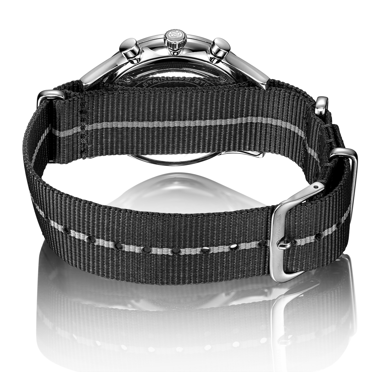 NURBURG Metal Silver 316L精鋼表殼 防水石英表